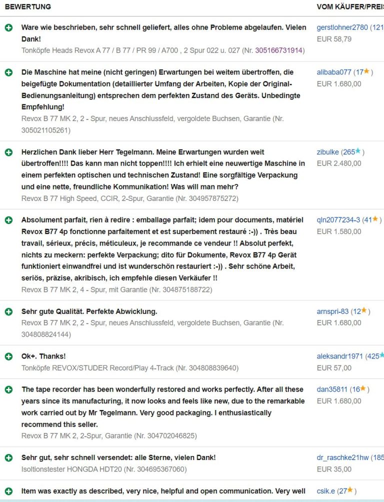 Sehen Sie bitte auch meine Bewertungen auf e-bay